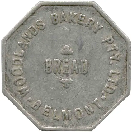 | Obverse lettering | WOODLANDS BAKERY PTY. LTD. *BELMONT* |