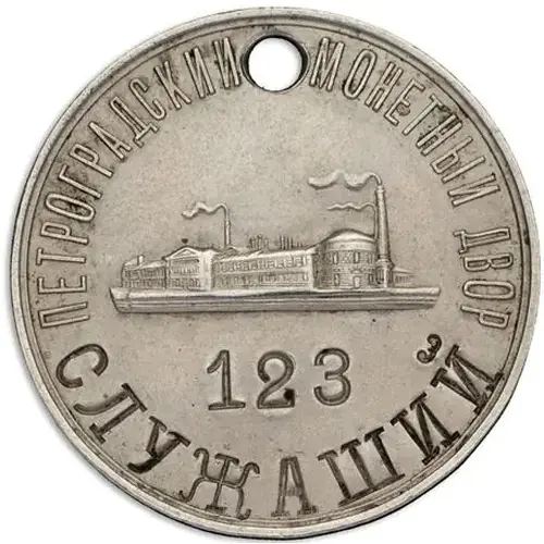 | Obverse lettering | ПЕТРОГРАДСКИЙ МОНЕТНЫЙ ДВОР 123 СЛУЖАЩИЙ (Translation: Petrograd Mint 123 Employee) |