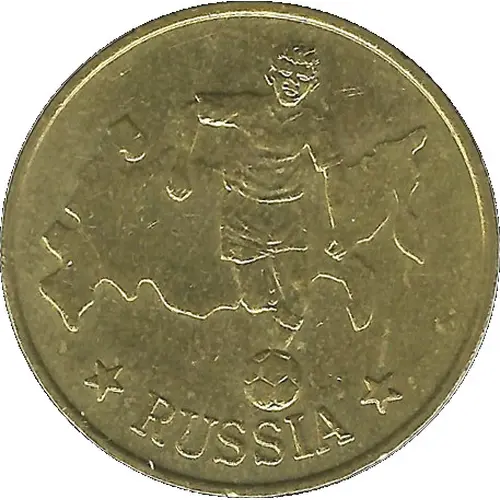 | Obverse description | Soccer player facing forward and running with the soccer ball with a map of Russia in the background |