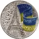 | Obverse description | Stylized Eiffel Tower with on the right the Ukrainian flag colored in which is inscribed the French motto. |