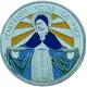 Colorized representation of the Virgin Mary, arms crossed, illuminated by rays of the sun. Different from Souvenirs et Patrimoine at 6 a.m. |