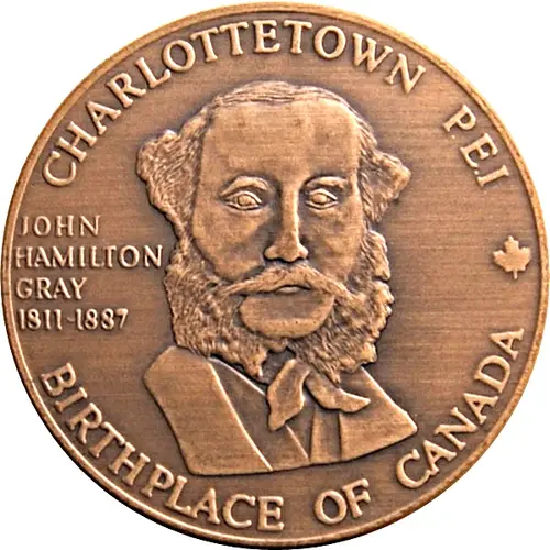 | Obverse lettering | CHARLOTTETOWN P.E.I. JOHN HAMILTON GARY 1811-1887 BIRTHPLACE OF CANADA |