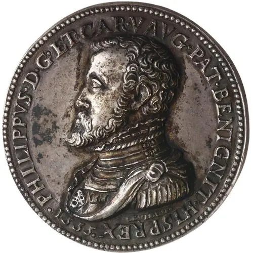 | Obverse lettering | PHILIPPVSDGETCARVAVGPATBENIGNITHISPREX1555 PAVI.POG.F. |