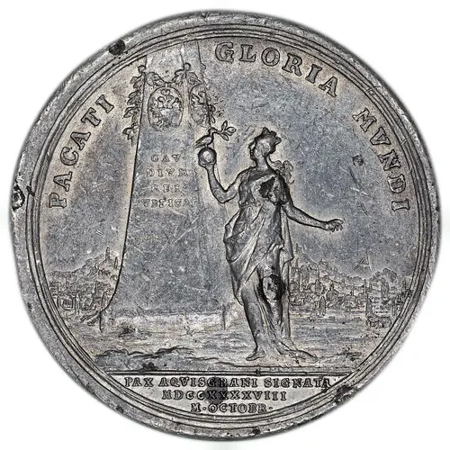 | Obverse lettering | PACATI GLORIA MVNDI GAV- | DIVM | REI- | PVBLICAE PAX AQVISGRANI SIGNATA MDCCXXXXVIII M. OCTOBER |
