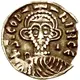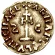 Descrizione del dritto Crowned, draped, and bearded bust holding cross with triangle to the right, all surrounded by legend.