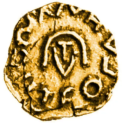 | Obverse lettering | D N TEO[ ]AHA[ ]VS (Translation: Our lord Theuderic.) |