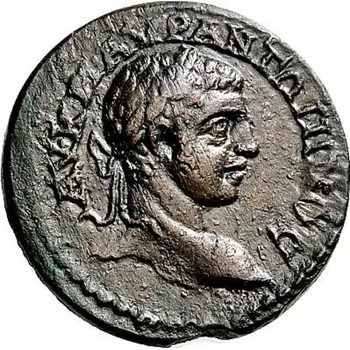 | توضیحات روی سکه | Bust of Elagabalus, right, laureate, seen from back. |