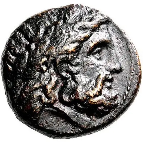 | Popis líce | Laureate and bearded head of Zeus to right |