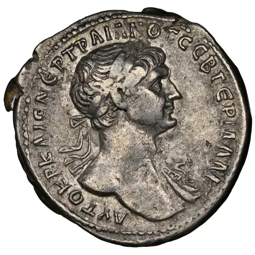 | Описание аверса | Laureate bust of Trajan right, with aegis visible on left shoulder. |