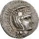 Descripción del anverso Head of Athena Parthenos to right, wearing an Attic helmet adorned with Pegasus, tendril, and four horse protomes
