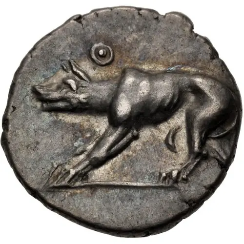 | Obverse description | Wolf at bay facing left. Letter Θ above. |