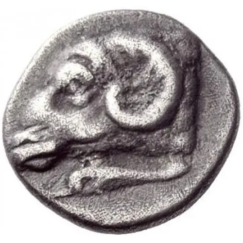 | Description de l’avers | Ram`s head left; below, dolphin left. |