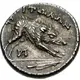 | Reverse description | Calydonian boar standing right with s monogram below and a trident head in exergue |