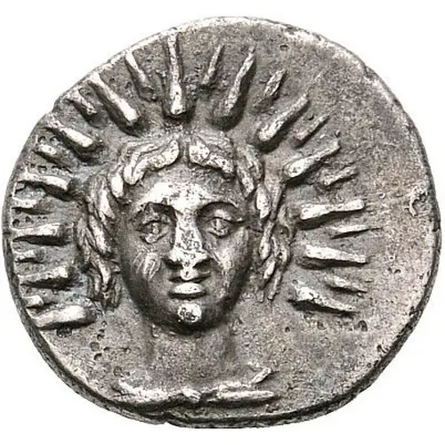 | Obverse description | Rayed head of Helios facing, with cloak tied around his neck |