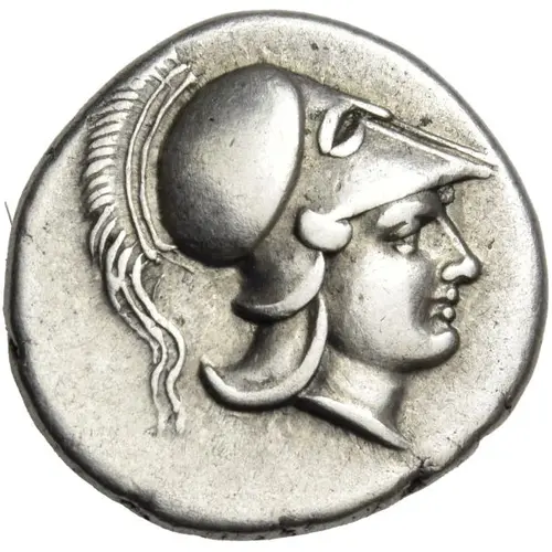 | Obverse description | Head of Athena to right, wearing crested Corinthian helmet. |