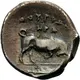 | Reversbeschreibung | Bull charging to right and in exergue, tunny fish |