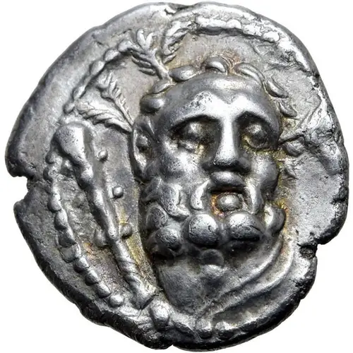 | 正面描述 | Head of Herakles facing slightly to right, wreathed with styrax and with lion skin draped around neck; club in left field. |