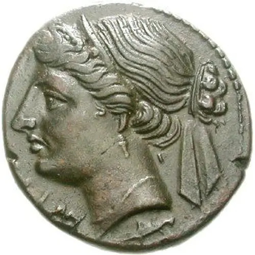 توضیحات روی سکه Head of Nike left; at left, NIKA; below neck, usually, symbol : dolphin, crescent, crescent and sword, cornucopiae, snake, and, sometimes, Γ.