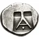 | Reverse description | Large A with two deep incuses above, pellet below |