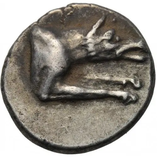 | Obverse description | Forepart of wolf at bay right. |