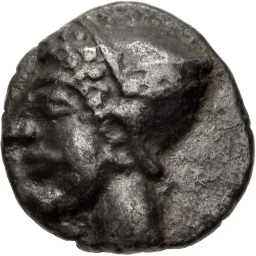 | توضیحات روی سکه | Head of female left, wearing bonnet ornated with pearls |