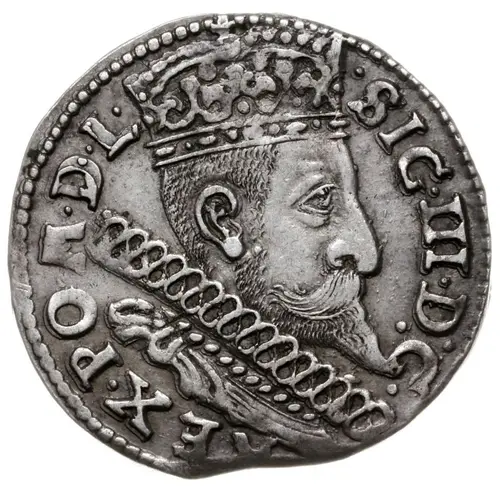 | Reverse description | Inscription in two lines. Above, value in Roman numerals above Polish eagle, Wasa arms and Lithuanian rider. Below, Lewart shield divides initials I F and two digit date, with mint mark B to right. |