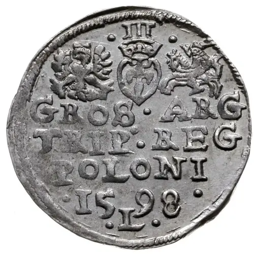 | Reverse lettering | III GROS ARG TRIP REG POLONI 1598 L (Translation: Silver three grossus of the Kingdom of Poland) |