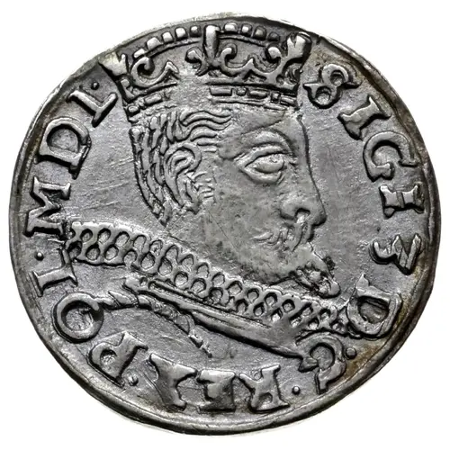 III GROS ARG TRIP REG POLO 98 HR (_) K (Translation: Silver three grossus of the Kingdom of Poland 1598) |