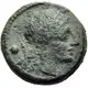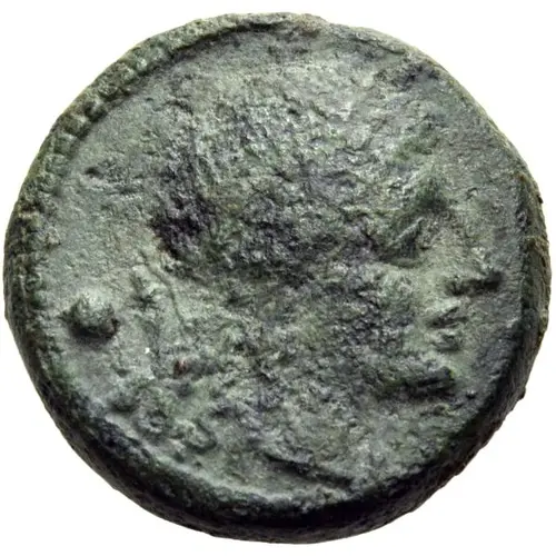 | 表面の説明 | Laureate head of Apollo to right, his bow and quiver at his shoulder; in the field to left, pellet (mark of value). |