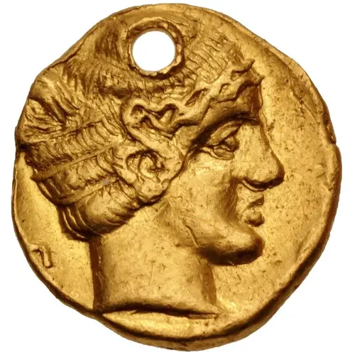 | Obverse description | Head of Nymph facing right with Π behind neck |