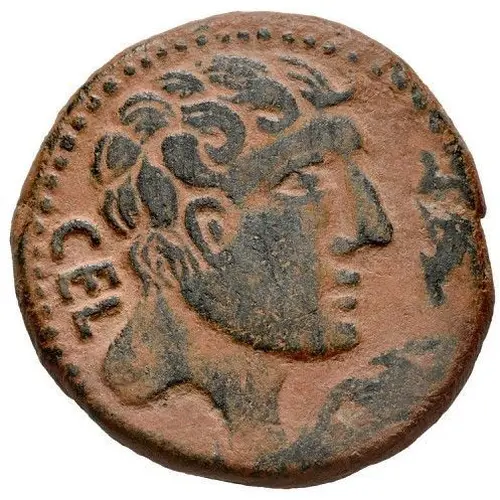| Descrizione del dritto | Beardless male head right, two dolphins before |