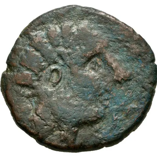 | Descrizione del dritto | Vasconian bearded male head facing right. Dolphin to the right. |