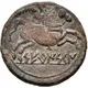 Horse rider advancing right, holding palm leaf.