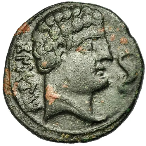 | توضیحات روی سکه | Male head facing right, wearing necklace. Dolphin to the right. |