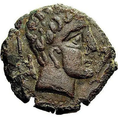 | Opis awersu | Male head facing right. Dolphin to the right. Plow to the left. |