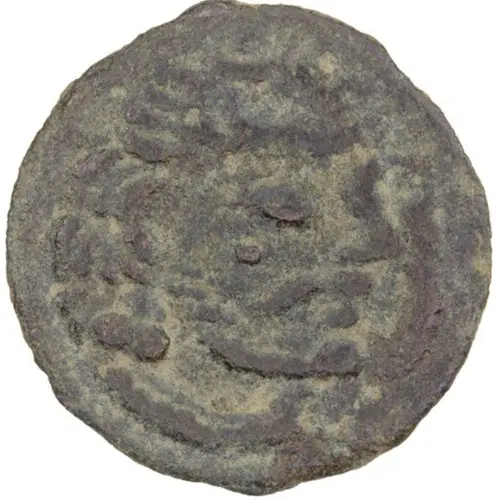| Beschrijving keerzijde | Sogdian word within square with triskeles-like tamgha of Kesh to the left, all surrounded by Sogdian legend. |