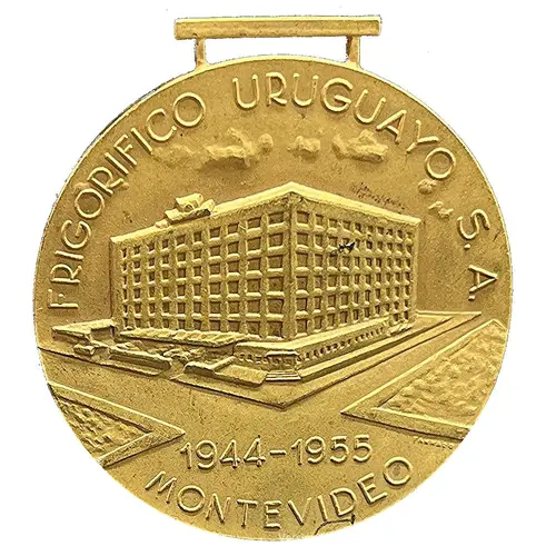 | Obverse lettering | FRIGORIFICO URUGUAYO S. A. 1944-1955 TAMMARO MONTEVIDEO (Translation: Uruguayan Meatpacking plant) |