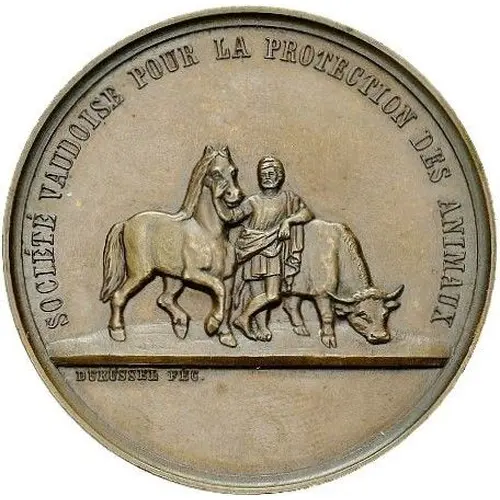 | Obverse lettering | SOCIÉTÉ VAUDOISE POUR LA PROTECTION DES ANIMAUX DURUSSEL FEC. |