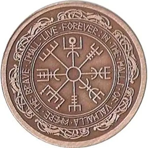 | Arka yüz açıklaması | Vegvísir in center, surrounded by ring of text. Both sides the same. |