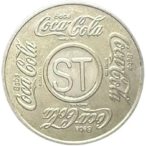 | Reverse description | The phrase in high relief `VALE 1 REFRIGERANTE NAS MÁQUINAS DE COCA . COLA .` forming a circle. In the center a smaller circle, with the acronym ST in high relief. |