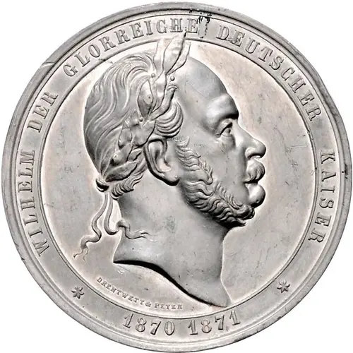 | Obverse lettering | WILHELM DER GLORREICHE DEUTSCHER KAISER 1870 1871 DRENTWETT&PETER |
