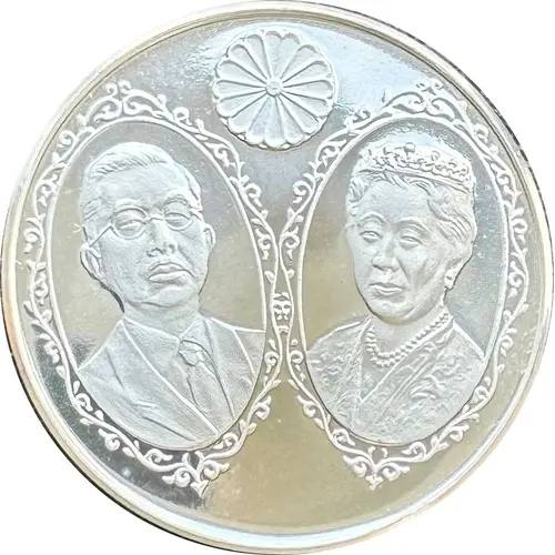 | Obverse description | Imperial Seal of Japan above framed busts of the emperor Hirohito and the crowned empress Kōjun. |