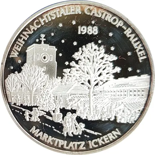 | Obverse lettering | WEIHNACHTSTALER CASTROP-RAUXEL 1988 MARKTPLATZ ICKERN (Translation: CHRISTMAS-TOKEN CASTROP-RAUXEL 1988 MARKETPLACE ICKERN) |