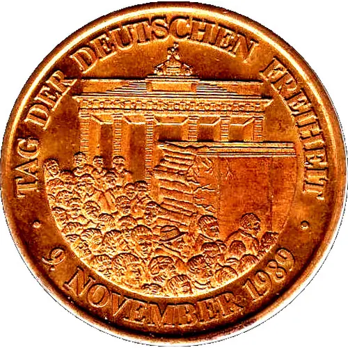 | Obverse lettering | ● Tag der deutschen Freiheit ● 9. November 1989 |