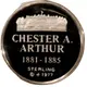 | Reverse lettering | CHESTER A. ARTHUR 1881 - 1885 STERLING © FM 1977 |