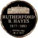 | Reverse lettering | RUTHERFORD B. HAYES 1877 - 1881 STERLING © FM 1977 |