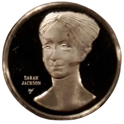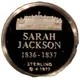 | Reverse lettering | SARAH JACKSON 1836 - 1837 STERLING © FM 1977 |