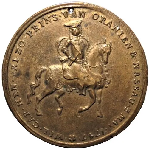 | Obverse lettering | ❀ • WIL• CAR• HEN• FRIZO• PRINS• VAN ORANIEN & NASSAU• 3 MAY• 1747• (Translation: Willem Karel Hendrik Friso, Prince of Orange and Nassau, 3 May 1747.) |