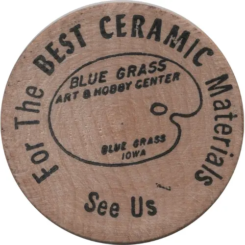 | Obverse lettering | For The BEST CERAMIC Materials BLUE GRASS ART & HOBBY CENTER BLUE GRASS IOWA See Us |