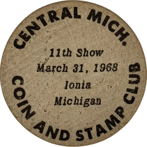 | Obverse lettering | CENTRAL MICH. 11th Show March 31, 1968 Ionia Michigan COIN AND STAMP CLUB |